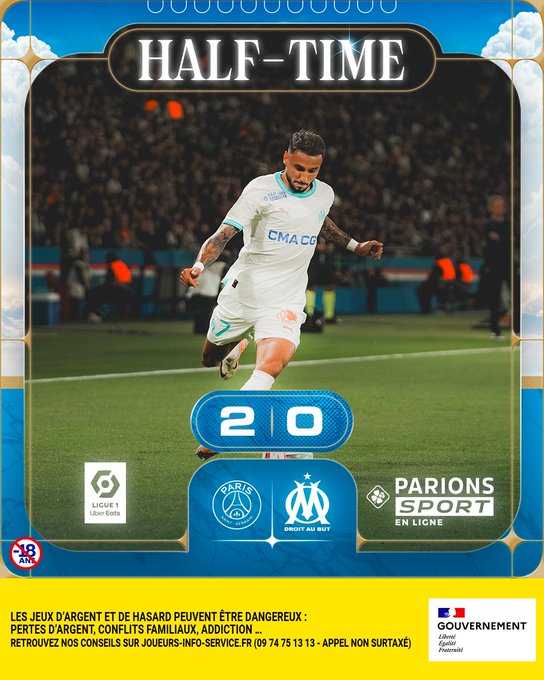 ⏱ 45’ | #PSGOM 2️⃣-0️⃣ ⏯ Nos Olympiens ont 2 buts de retard à la pause. Il reste encore 45 minutes à jouer, ne rien lâcher jusqu’au bout ! 🗣 Allez Marseillais ! 🔵⚪️