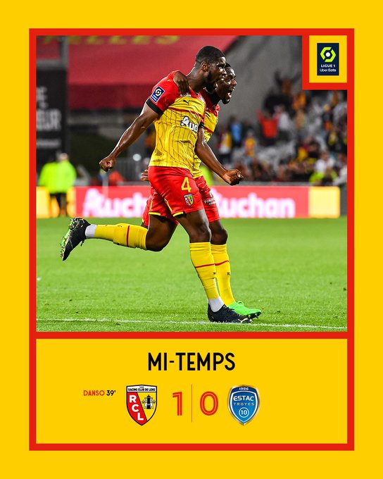 ⏯️ Première période cadenassée dans laquelle les Sang et Or sont parvenus à faire sauter le verrou sur coup de pied arrêté. Face à des Troyens bien armés défensivement, ils multiplient les opportunités pour faire la différence. @RCLens 1⃣-0⃣ @estac_officiel #RCLESTAC
