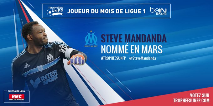 Capitaine exemplaire, @SteveMandanda fait partie des nommés en mars. Votez sur bit.ly/TropheesUNFP #TropheesUNFP