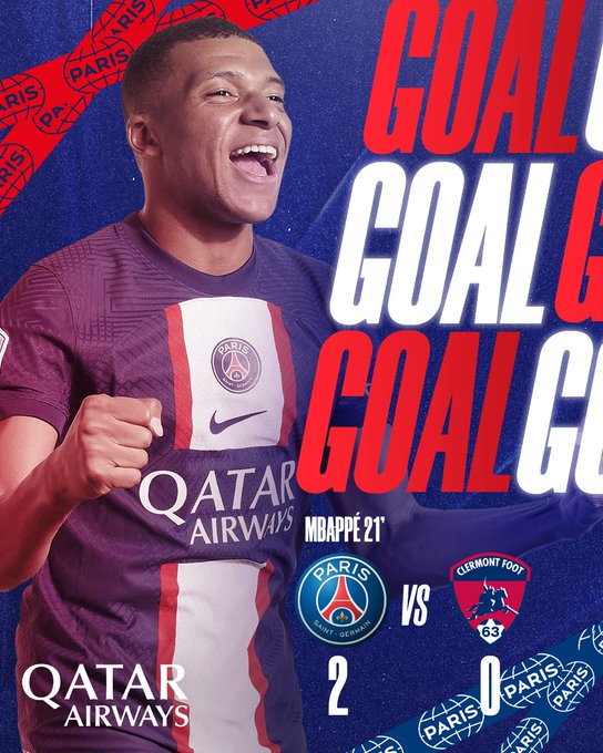 ⏱ 21' - @KMbappe transforme ! Le Paris Saint-Germain mène 2-0 ! #PSGCF63 2-0 I #Ligue1 #ÁnimoSergioRico