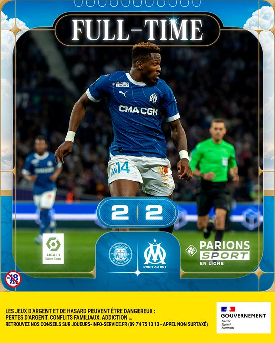 ⏱️ 90’+7 | #TFCOM 2️⃣-2️⃣ L'OM arrache le match nul au bout du temps additionnel. 🗓️ Prochain rendez-vous mercredi à 21 heures contre Nice à l’Orange Vélodrome.
