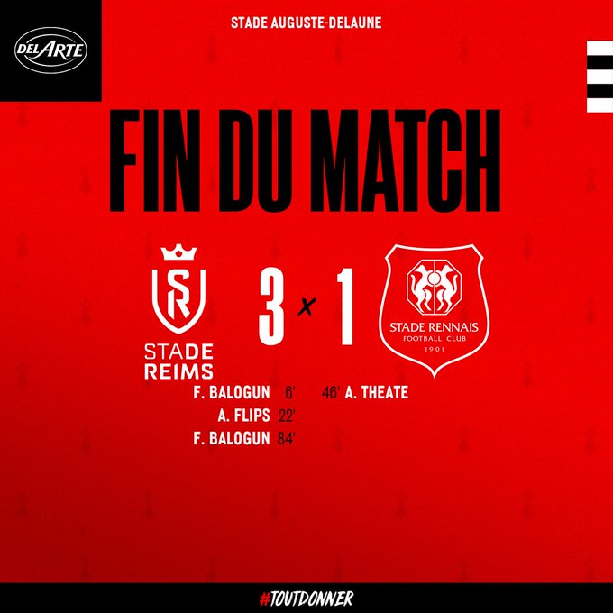 🏁 C'est terminé à Reims. Les Rouge et Noir s'inclinent. Prochain rendez-vous lundi avec la réception de l'OGC Nice. #SDRSRFC 3-1