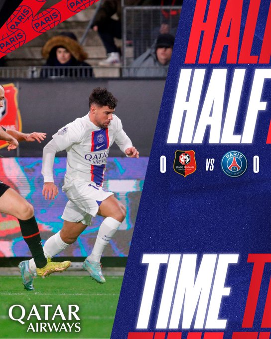 𝐌𝐈-𝐓𝐄𝐌𝐏𝐒 ⏸ Score de parité au bout de ces 45 premières minutes. ⏸️ #SRFCPSG I 0-0