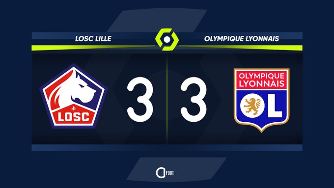 Dès le retour des vestiaires, le match s'emballait enfin. Lille transperçait la défense lyonnaise en profondeur et David concluait de près, quelques secondes après la reprise. Les affaires lyonnaises ne s'arrangeaient par la suite. Sur un contre, Cherki poussait Gudmundsson dans la surface. David transformait la sentence, pas la dernière de la soirée. Dans la foulée, Barcola ajustait Riou d'une belle reprise pour relancer l'OL avant l'entrée de Lacazette. L'attaquant était d'abord malheureux puisqu'il contrait le ballon de la main, en tant que membre du mur sur coup-franc. David s'offrait un triplé pour son second penalty. L'OL était hors-course ? Non, son attaquant vedette surgissait. Lacazette reprenait de la tête un beau centre de Barcola puis nettoyait la lucarne de Chevalier dans une fin de match folle. Le LOSC croyait arracher un troisième pénalty mais la VAR intervenait pour sauver l'OL d'une défaite. 3-3, un match fou mais des regrets pour les deux équipes surtout les Lillois, 6e, qui ratent leur entrée dans le top 5. L'OL remonte au 8e rang.