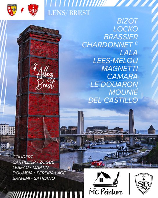 𝗦𝘂𝗽𝗽𝗼𝗿𝘁𝗲𝗿𝘀 𝗯𝗿𝗲𝘀𝘁𝗼𝗶𝘀 ! 🔴⚪ Voici le 𝐎𝐍𝐙𝐄 de départ pour affronter le RC Lens ! 🔥 #RCLSB29