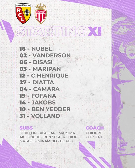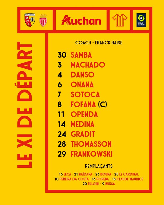 H-1 avant #RCLASM 🔥 Voici 𝐥𝐞𝐬 𝐒𝐚𝐧𝐠 𝐞𝐭 𝐎𝐫 qui débuteront cette confrontation face à l'@AS_Monaco ! ➡️ @Onana_J17 et Florian Sotoca figurent à nouveau dans le onze artésien. #FierDEtreLensois