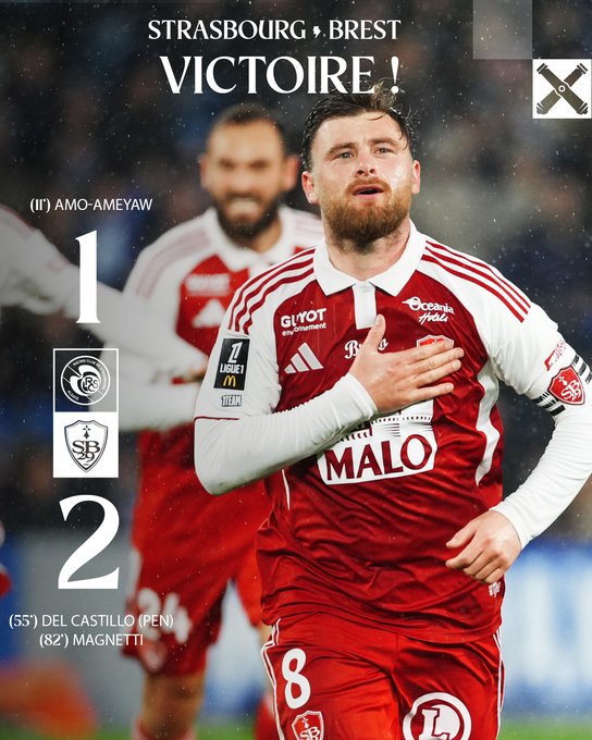 ⌚️ 𝗙𝗶𝗻 𝗱𝘂 𝗺𝗮𝘁𝗰𝗵 | Victoire des Brestois à Strasbourg !!! Appliqués et sérieux, les Ty-Zefs remportent 3 points précieux à la Meinau !!! Bravo les gars !!! 🔴⚪ #RCSASB29 1️⃣-2️⃣