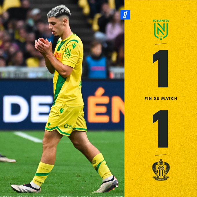 Fin du match. Plus entreprenants en seconde période avec de meilleures intentions, nos Jaune et Vert concèdent le match nul face à Nice. 𝟭-𝟭 #fcnogcn
