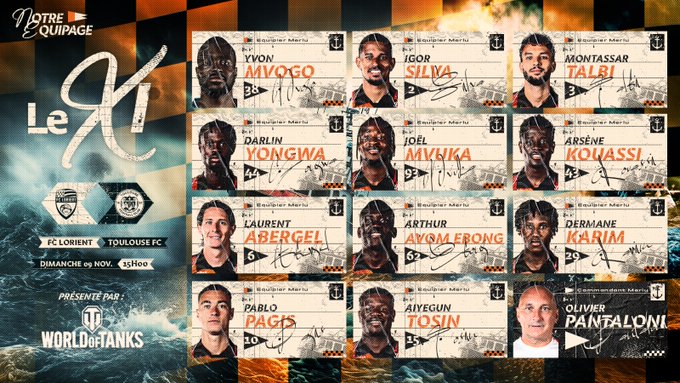 Le onze de départ de nos Merlus pour affronter le @ToulouseFC 🟠⚫️ #FCLTFC