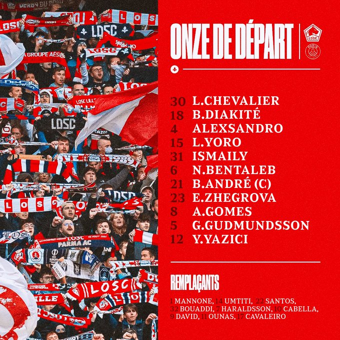 Supporters du LOSC, voici votre composition pour affronter le Paris Saint-Germain 👊⬇️ #LOSCPSG