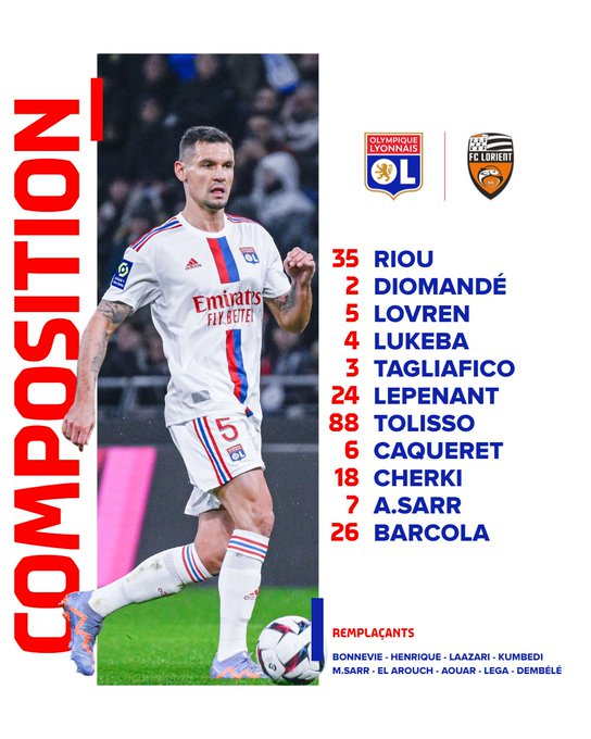 🦁 Voici notre 𝗫𝗜 𝗱𝗲 𝗱𝗲́𝗽𝗮𝗿𝘁 pour le match #OLFCL ✊🔴🔵