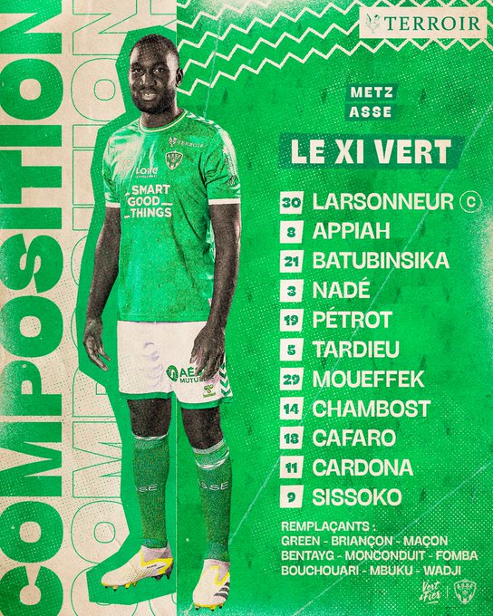 👊 Le XI d’Olivier Dall’Oglio pour #FCMASSE, le barrage retour ! 👥 Un seul changement par rapport à l’aller avec la titularisation de Dennis Appiah ! ALLEZ ! 💚
