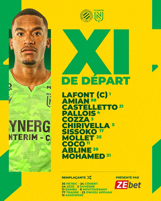 📄𝗟𝗲 𝗫𝗜 𝗱𝗲 𝗱𝗲́𝗽𝗮𝗿𝘁 face à Montpellier.