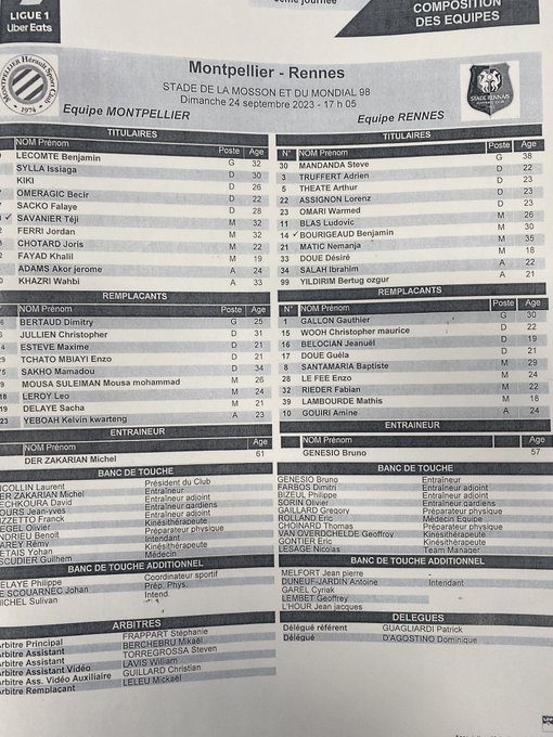La composition rennaise : Mandanda - Assignon, Omari, Theate, Truffert - Matic, Bourigeaud, Doué - Blas, Salah, Yildirim. #MHSCSRFC 🧨🔴⚫️
