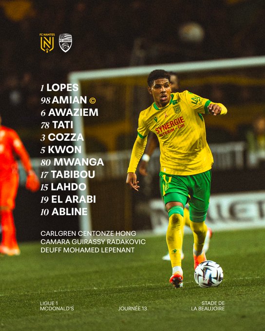 ﹅ Le XI de départ face à Lorient. #OnEstNantes
