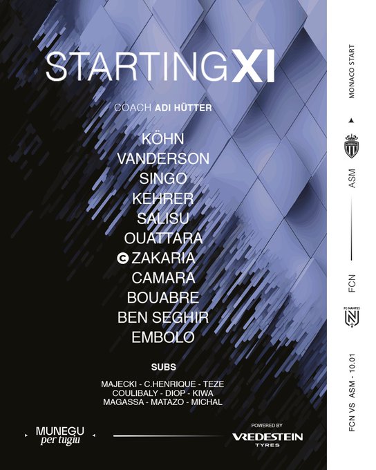 ﹅ Le XI de départ face à Monaco. #OnEstNantes