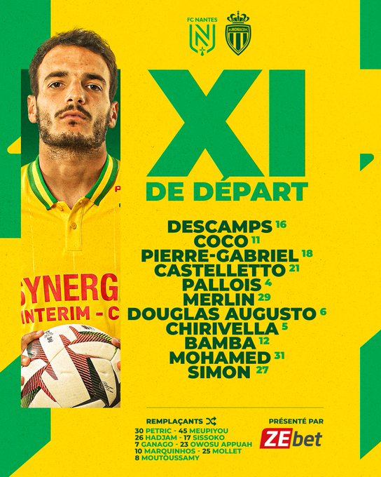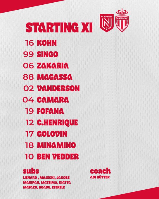 📑 𝗟𝗲 𝗫𝗜 𝗱𝗲 𝗱𝗲́𝗽𝗮𝗿𝘁 face à Monaco.