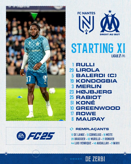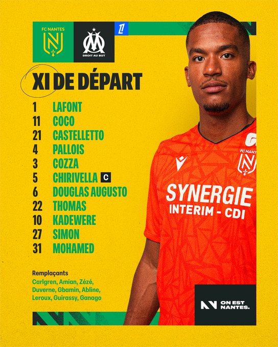 ﹅ Le XI de départ face à Marseille. #OnEstNantes