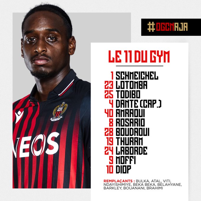 Schmeichel, Lotomba, Todibo, Dante, Amraoui, Rosario, Boudaoui, K.Thuram, Laborde, Moffi, Diop