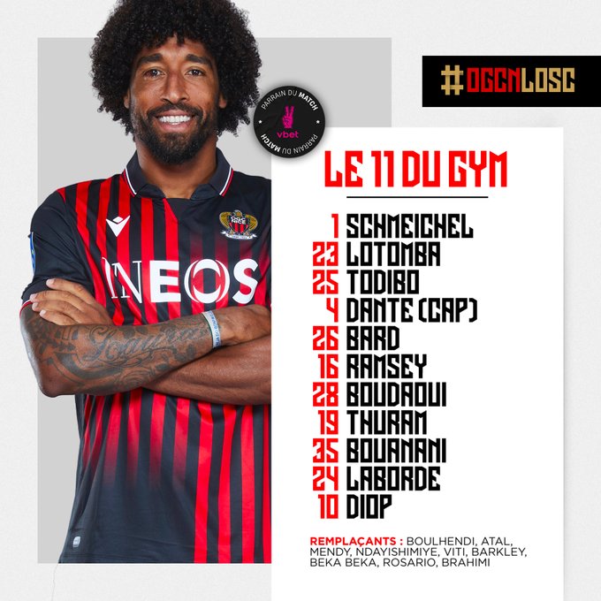 Voici le 1️⃣1️⃣ de l'#OGCNice pour affronter le @losclive Badredine Bouanani (18 ans) va honorer sa première titularisation en @Ligue1UberEats #OGCNLOSC #IssaNissa