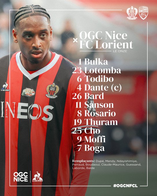 Bulka - Lotomba, Todibo, Dante, Bard - Sanson, Rosario, K.Thuram - Cho, Moffi, Boga