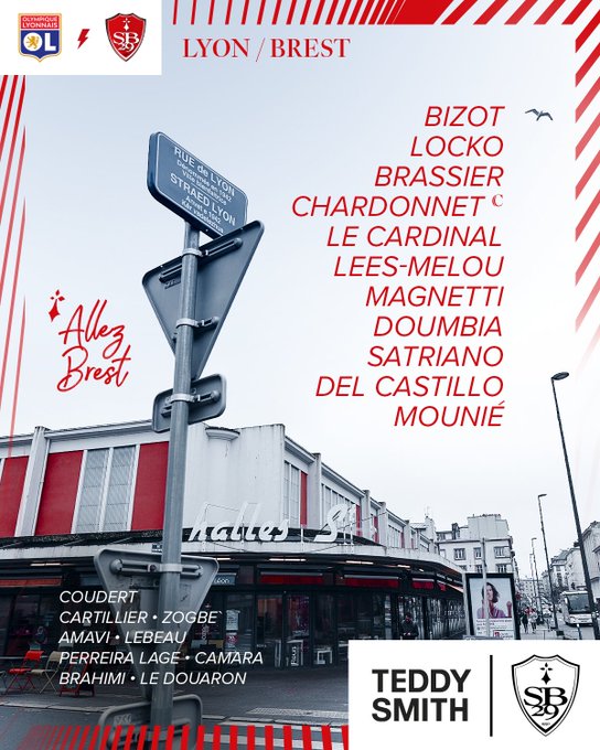 🦁 Notre 𝗫𝗜 𝗱𝗲 𝗱𝗲́𝗽𝗮𝗿𝘁 pour affronter le Stade Brestois ! 👊🔴🔵 #OLSB29