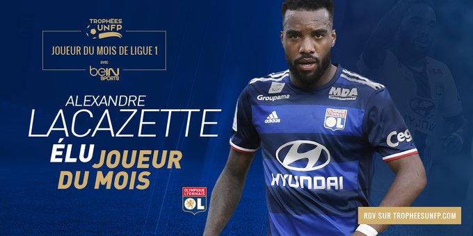 Début de saison canon pour @LacazetteAlex ! Vous l'avez élu meilleur joueur du mois d'août de @Ligue1 #TropheesUNFP