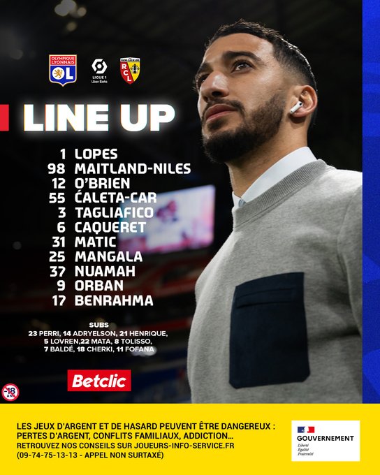 Vous l'attendiez ... Voici notre 1️⃣1️⃣ de départ pour affronter Lens 🔴🔵 #OLRCL
