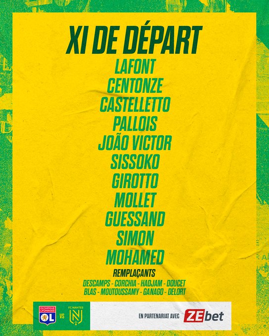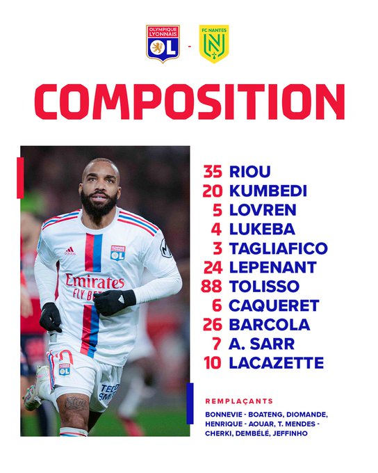 🦁 Notre 𝗫𝗜 𝗱𝗲 𝗱𝗲́𝗽𝗮𝗿𝘁 pour affronter le FC Nantes ⚔🔴🔵 #OLFCN