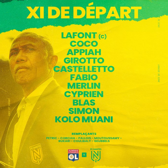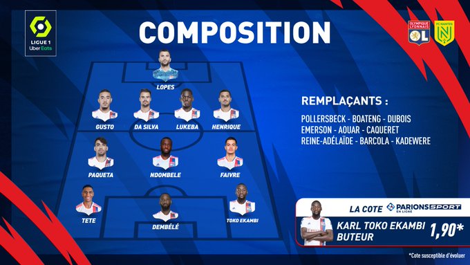 Le XI de départ lyonnais pour la réception du FC Nantes ! 🦁🔴🔵 #OLFCN