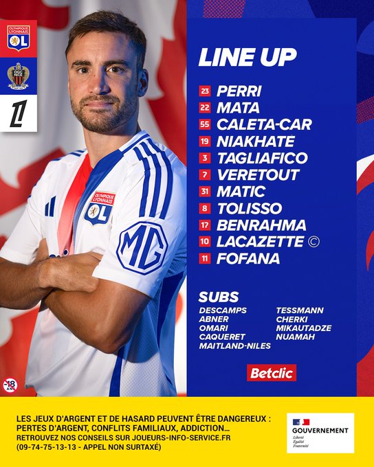 🦁 Notre 𝗫𝗜 𝗱𝗲 𝗱𝗲́𝗽𝗮𝗿𝘁 pour affronter Nice 👊🔴🔵 #OLOGCN
