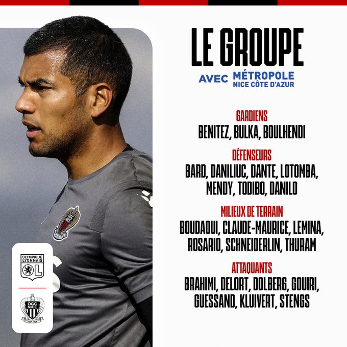 Le groupe lyonnais pour la réception de Nice, ce samedi à 21h ! 🦁🔴🔵 #OLOGCN #AliExpress