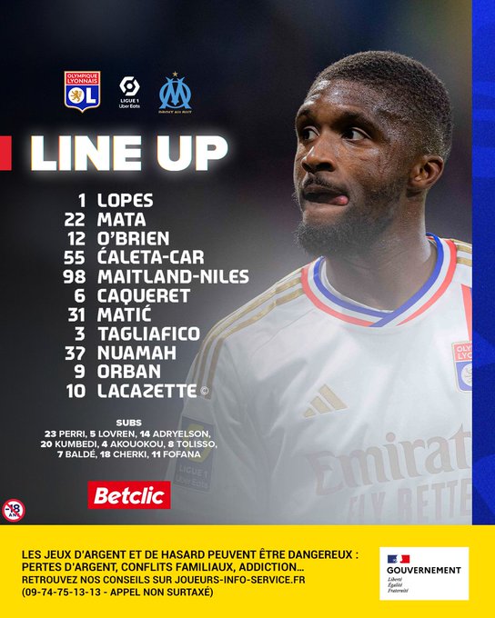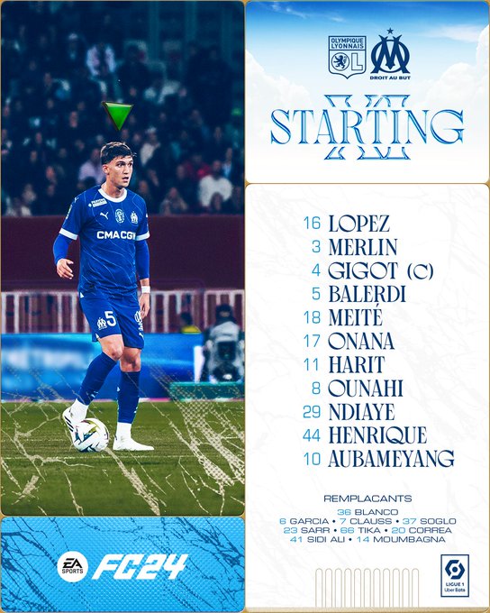 📝 Le 𝗫𝗜 𝗱𝗲 𝗱𝗲́𝗽𝗮𝗿𝘁 olympien pour ce choc contre Lyon ! 👀 #OLOM 💥