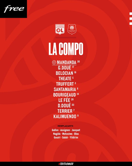 🦁 Notre 𝗫𝗜 𝗱𝗲 𝗱𝗲́𝗽𝗮𝗿𝘁 pour affronter le Stade Rennais ! 👊🔴🔵 #OLSRFC
