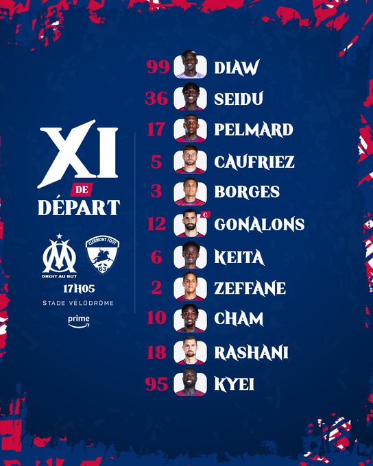 📋 𝐋𝐚 𝐜𝐨𝐦𝐩𝐨 🌋 Ils sont là, les 11 Clermontois qui débuteront ce #OMCF63 💪🔴🔵