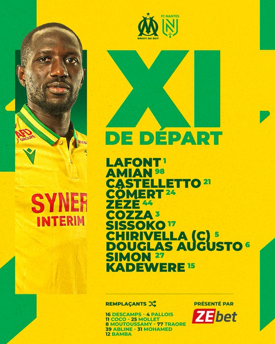 𝗟𝗔 𝗖𝗢𝗠𝗣𝗢𝗦𝗜𝗧𝗜𝗢𝗡 📝 #OMFCN Le XI de départ de coach 𝗚𝗮𝘀𝘀𝗲𝘁 🧢