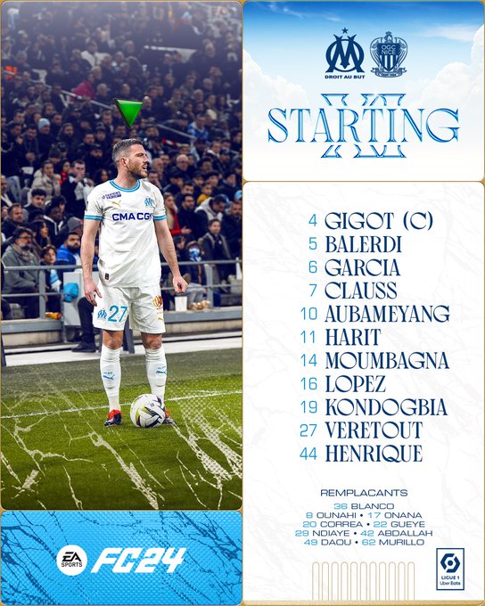 👥 🄲🄾🄼🄿🄾 ⚔️ #OMOGCN Voici le 𝗫𝗜 𝗱𝗲 𝗱𝗲́𝗽𝗮𝗿𝘁 pour cette rencontre face à l’OGC Nice ! ⚔️