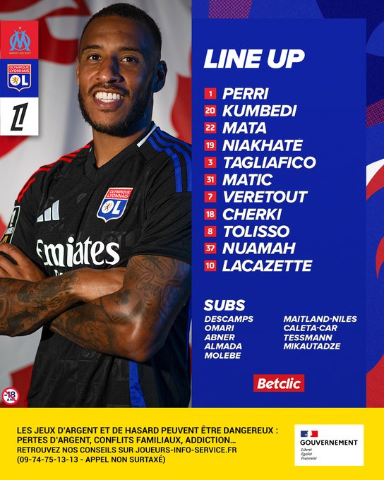 👥 🅒🅞🅜🅟🅞 #OMOL Voici le 𝗫𝗜 𝗱𝗲 𝗱𝗲́𝗽𝗮𝗿𝘁 pour cette rencontre face à Lyon ! ⚔️
