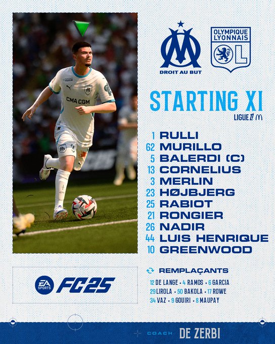 🚨 Voici notre 11 de départ pour cet Olympico 🔴🔵 #OMOL