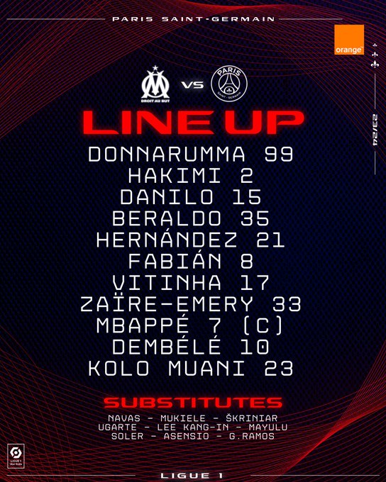 Le 1⃣1⃣ de départ ! 📋🔴🔵 #LeClassique | #OMPSG
