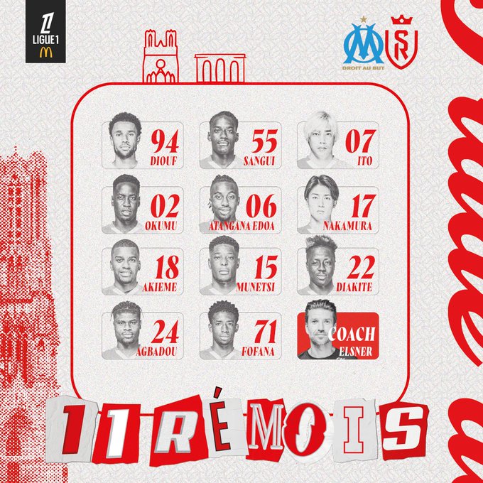 👥 Voici les 𝗫𝗜 𝗿𝗲́𝗺𝗼𝗶𝘀 qui débuteront face à l'@OM_Officiel ce soir au 𝘝𝘦́𝘭𝘰𝘥𝘳𝘰𝘮𝘦 ! 🔥 #OMSDR #GoSDR