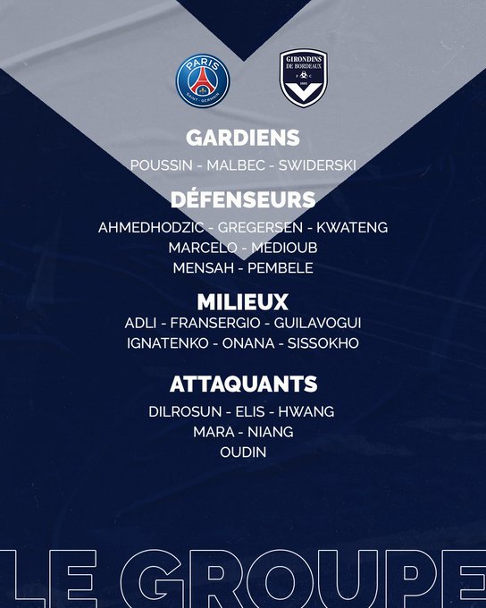 Voici le groupe retenu pour le déplacement chez le @PSG_inside demain #PSGFCGB