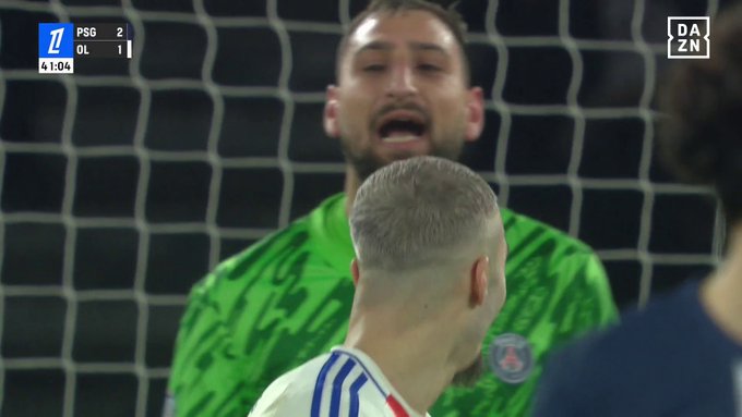 😤L'embrouille Mikautadze Donnarumma sur le but du lyonnais. Les 2 joueurs ont écopé d'un carton jaune 🟨