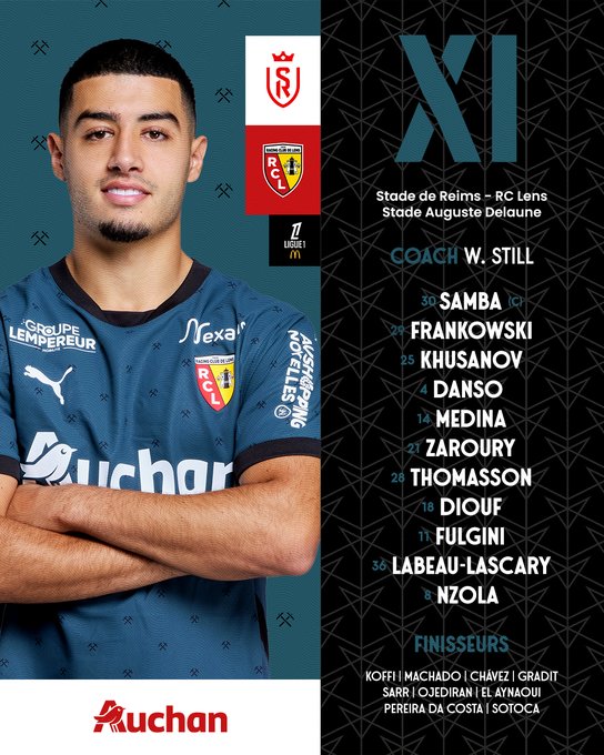 𝑯-𝟏 avant #SDRRCL 🟢⚫️ Voici 𝒍𝒆 𝒐𝒏𝒛𝒆 𝒔𝒂𝒏𝒈 𝒆𝒕 𝒐𝒓 choisi par Will Still pour débuter cette rencontre de @Ligue1 face au @StadeDeReims ! 🔙 Le coach artésien procède à 5⃣ changements par rapport au dernier match. #FiersDEtreLensois