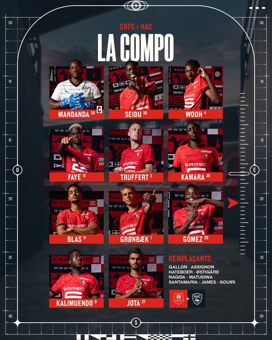 Avec Andrés Gómez et Jota alignés d'entrée, le 𝗫𝗜 𝗥𝗼𝘂𝗴𝗲 𝗲𝘁 𝗡𝗼𝗶𝗿 pour défier les Normands 👥 #ToutDonner