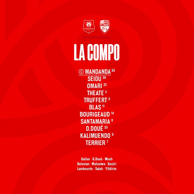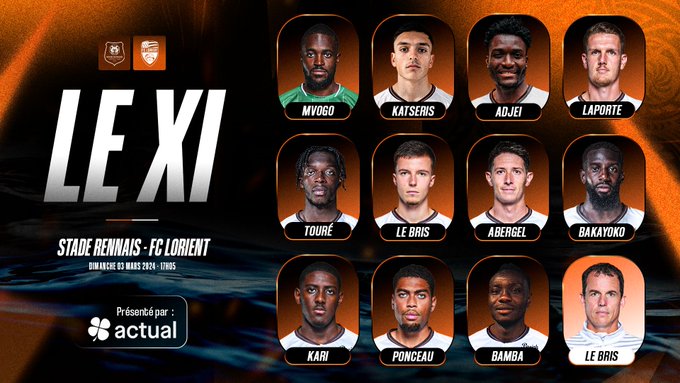 👥La composition de nos Merlus pour le derby. Allez Lorient ! #SRFCFCL