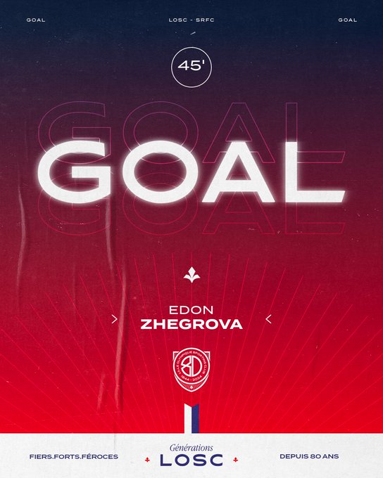 45' I 🤍❤️ 1-0 🔴⚫️ Buuuuuuuut signé Edon Zhegroooooova 😍 L'action est sublime 🔥 #LOSCSRFC