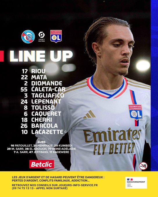 🚨 #RCSAOL | Découvrez le 𝐨𝐧𝐳𝐞 𝐝𝐞 𝐝𝐞́𝐩𝐚𝐫𝐭 du Racing pour cette première journée de @Ligue1UberEats face à l'@OL ! 🔴 Le match en direct commenté ici ⤵️