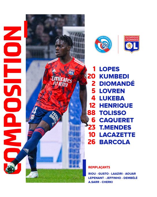 Voici le XI de notre coach Laurent Blanc pour le match #RCSAOL 🦾🔴🔵