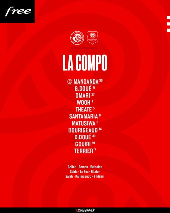 La composition des Rouge et Noir pour affronter Strasbourg โ๏ธ ๐บ Les buts en quasi-direct sur l'appli' @FreeLigue1 ๐ free-ligue1.fr #RCSASRFC